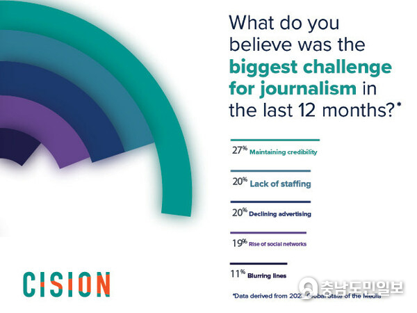 전세계 PR, 마케팅 및 전문 커뮤니케이터의 기사 파악 및 영향력 확산을 지원하는 포괄적 소비자 및 미디어 인텔리전스/커뮤니케이션 플랫폼을 제공하는 씨전(Cision)[https://www.cision.com/]은 14차 연례 미디어 현황 보고서(State of the Media Report)[https://fal.cn/3ys5i]에 포함된 이 같은 조사 결과를 발표했다.