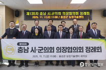(충남도민일보=홍성 정연호기자/ 홍성군의회(의장 김덕배)는 7일 홍성군 농업기술센터에서 충남시‧군의회의장협의회 제135차 정례회를 개최했다. 이번 회의는 충남시‧군의회의장협의회 주최, 홍성군의회 주관으로 진행되었으며 도내 12개 시‧군 의장단과 충청남도 관계자가 참석했다. 이날 행사에는 이용록 홍성군수를 비롯해 홍성군의회 신동규 운영위원장, 윤일순 행정복지위원장, 최선경 산업건설위원장, 장재석 의원, 이정희 의원이 함께 참석하여 자리를 빛냈다. 환영식에서 이용록 홍성군수는 환영사를 통해 “지난주 열린 ‘홍성글로벌바비큐페스티벌’에 의장단께서 함께해 주신 덕분에 지역 활성화에 큰 힘이 되었다”고 감사의 뜻을 전하며, “앞으로도 충남 시‧군 간 교류와 협력이 더욱 활발해지기를 바란다”고 말했다. 이어 진행된 본회의에서는 협의회 운영과 지방 현안 관련 안건이 논의되었다. 특히 「2026년도 충남시‧군의회의장협의회 예산안(안)」이 상정되어 원안 의결되었으며, 오는 11월 개최 예정인 대한민국시군자치구의장협의회 시도대표회의에 충남 협의회 안건으로 상정할 예정인‘미이용 바이오매스(과실수목 등) 자원 활용 확대 관련 법규 개정 촉구’ 사항이 보고되었다. 또한 정례회와 함께