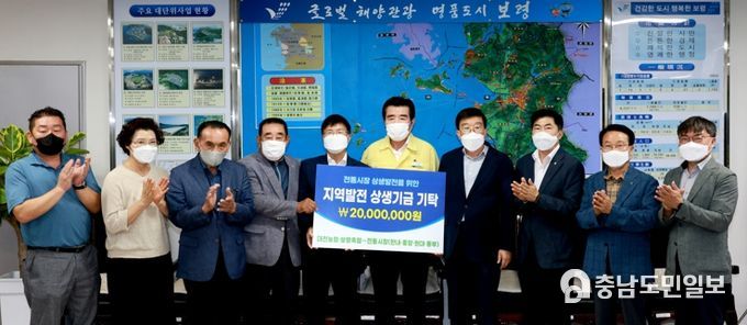 이 날 기금 전달식에서는 2020년 6월 보령시와 대천농협·보령축협, 4개 전통시장간 지역경제 활성화를 위해 맺은 상생협약 체결에 따라 상생협력기금 2천만 원을 전달했다.