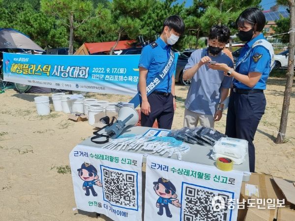(충남도민일보) 태안해양경찰서는 이달 17일, 천리포해수욕장 일원에서 ‘근거리 수상레저활동 신고 활성화를 위한 캠페인’을 진행했다고 밝혔다.