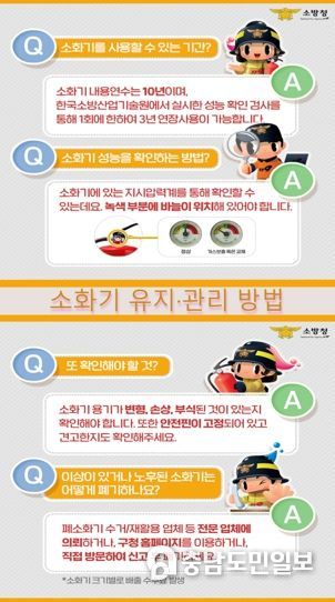 (충남도민일보) 서산소방서는 평상시 소화기 관리를 통해 화재 발생 시 적절한 사용으로 인명 및 재산피해를 현저히 줄이기 위한 소화기 유지·관리 방법 안내에 나섰다.