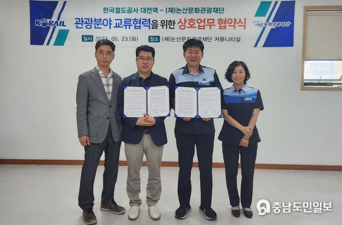 (논산=충남도민일보) 논산문화관광재단이 지난 23일 한국철도공사 대전역과 논산 지역 관광진흥을 위한 업무협약을 맺었다.