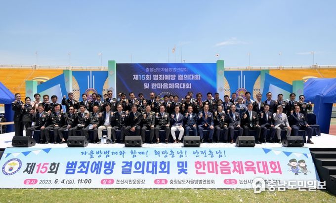 (논산=충남도민일보) 충청남도 자율방범연합회가 주최한 ‘제15회 범죄예방 결의 및 한마음 체육대회’가 지난 4일 논산 시민운동장에서 열려 2천여 방범대원의 왕성한 참여 속, 성황리에 마무리됐다.