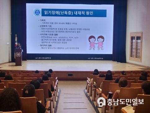 (논산=충남도민일보) 논산계룡교육지원청은 13일 논산아트센터에서 난독증의 이해와 학생지도 실제 연수를 실시했다.