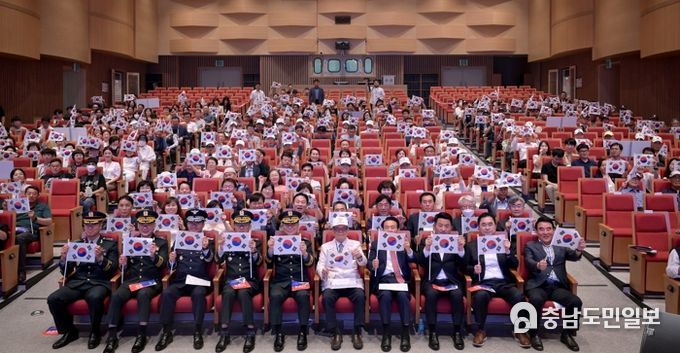 (논산=충남도민일보) 논산시가 23일 오후 논산아트센터에서 6ㆍ25전쟁의 역사적 의미를 되새기고 호국영령과 참전용사들의 숭고한 희생정신을 기리는 ‘제73주년 6ㆍ25전쟁 기념식’을 거행했다.