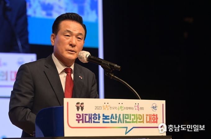 (논산=충남도민일보) 논산시가 지난 3일 민선 8기 출범 1주년을 기념해 개최한 ‘시민과의 대화’행사에서 백성현 시장이 1년간의 소회와 앞으로의 각오를 밝혔다.