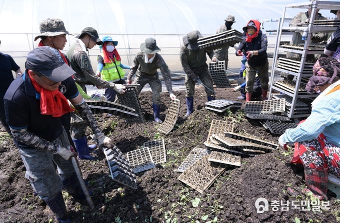 군 부대 인력도 복구 작업에 큰 힘이 되고 있다. 성동면 제방 붕괴 시 인근 군 부대 관계자들이 비상 대응에 힘을 보탰으며, 19일에는 제3585부대 4대대 부대원들이 나서 시설하우스 원상복구 작업을 주도했다.