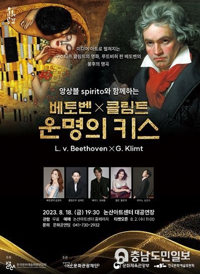 (충남도민일보) 논산문화관광재단이 오는 18일 오후 7시 30분 논산아트센터에서 ‘스피리또앙상블과 함께하는 '베토벤×클림트, 운명의 키스'’공연을 선보인다.