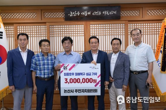 한편 논산시 주민자치협의회는 같은 날 오후 논산시청을 방문, 백성현 논산시장에게 수재 복구 성금 3백만 원을 기탁하기도 했다. 백 시장은 “지역사회의 아픔을 함께 나누고 극복 의지를 북돋고 계신 주민자치협의회 분들의 정성에 감사드린다”고 화답했다.