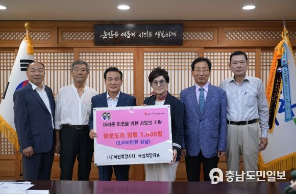 (충남도민일보) (사)국민희망시대가 지난 2일 논산시에 아웃도어(등산ㆍ운동용) 의류 1천 벌을 기탁하며 이웃사랑의 마음을 전했다.