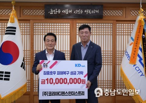 백 시장은 “수해 극복에 온 지역사회가 단결하는 가운데, KDind 측이 나누신 성의가 시민들에게 큰 힘이 될 것”이라며 “앞으로도 논산시 지역사회와 KDind가 상생하는 관계로 발전할 수 있기를 희망한다”고 화답했다.