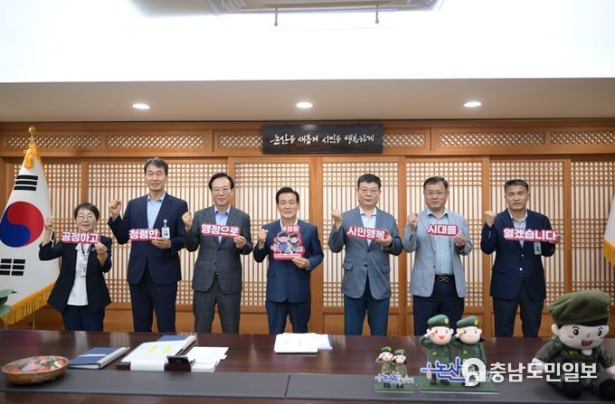 (충남도민일보) 논산시가 지난 28일 시장실에서 ‘간부 공무원 청렴 결의 간담회’를 실시했다.