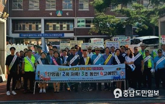 (충남도민일보) 논산계룡교육지원청은 6일 개학기(2학기)를 맞아 논산중앙초등학교 정문 앞에서 안전한 등굣길 조성을 위한 ‘등굣길 교통안전 합동 캠페인’을 실시했다.