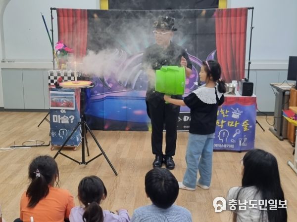 (계룡=충남도민일보) 논산계룡교육지원청은 지난 27일 논산 이화초등학교에서 문화예술 체험 프로그램의 일환으로 마술 공연을 진행했다고 밝혔다.