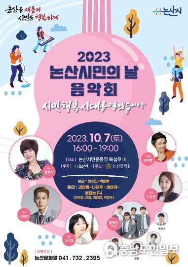 (충남도민일보) 논산시민의 날(매년 10월 1일)을 기념하는 문화예술공연 ‘2023 논산시민의 날 음악회’가 오는 7일 토요일 오후 4시 논산시민운동장에서 막을 올린다.