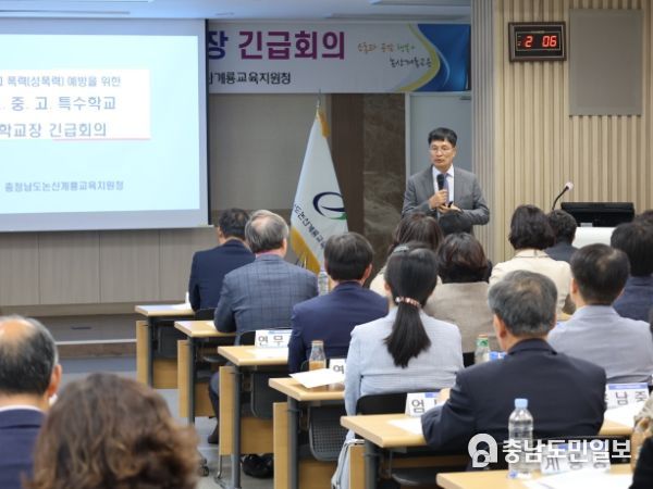 (논산=충남도민일보) 논산계룡교육지원청은 지난 20일 초·중·고·특수학교 학교장 60여 명을 대상으로 ‘2023학년도 학교장 긴급회의’를 개최했다고 밝혔다.