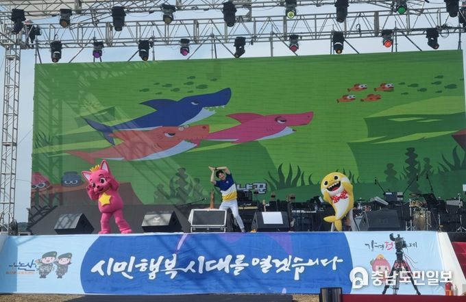 지난 20일부터 22일까지 강경젓갈축제 본무대에서 열린 이번 공연은 어른들만의 축제에서 벗어나 전 세계적으로 사랑받는 핑크퐁, 아기상어, 튼튼쌤이 출연하여 어이들이 사랑하는 다양한 노래와 율동을 선보이는 공연이었다.