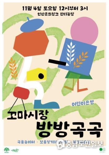 한편, 매월 첫째 주 토요일 진행되는 ‘꼬마시장 방방곡곡’은 오는 4일 연산문화창고에서 11월의 장날을 맞아 전국의 어린이 손님들을 맞이한다.