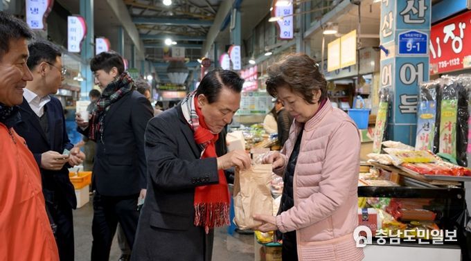 한편, 백성현 논산시장은 상인들과 직접 대면하며 동절기 시장 운영의 애로사항부터 물가안정을 위한 생생한 목소리를 청취했다. 백 시장은 “원도심 활성화, 소상공인 진흥을 위해서는 전통시장이 재생의 한 축이 되어야 한다”며 “되도록 자주 삶의 현장을 찾아 상인 여러분의 목소리를 경청하며 전통시장 혁신 노력에 임하겠다”고 말했다.
