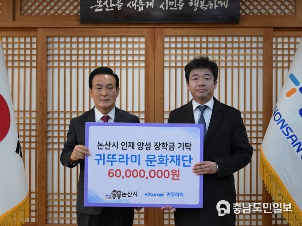 (충남도민일보) 논산시는 지난 23일 귀뚜라미 그룹(회장 최진민)이 지역 학생들의 교육 여건 개선과 학업 지원을 위해 장학금 6천만 원을 전달했다고 밝혔다.