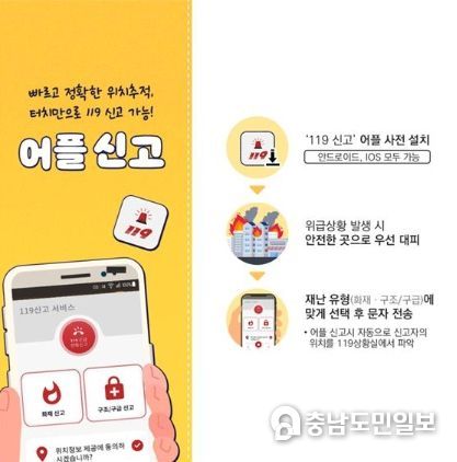 (충남도민일보) 논산소방서는 화재·구조·구급 등 재난 상황에서 음성통화 외 다양한 매체를 활용한 신고 서비스 홍보에 나섰다.