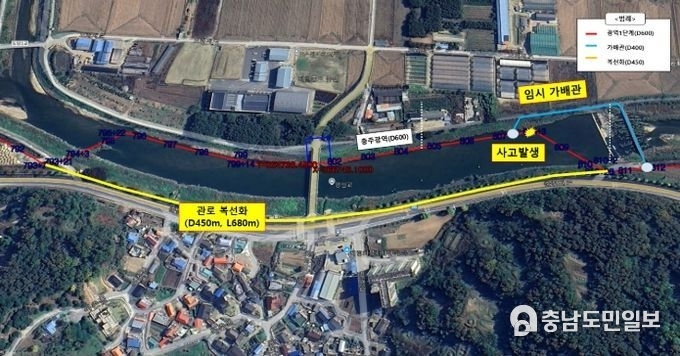 한국수자원공사는 기존 누수 관로에 대한 보강 설계를 마친 상태이며, 10월 중 가배관 철거 등 복구 작업을 완료할 예정이다.