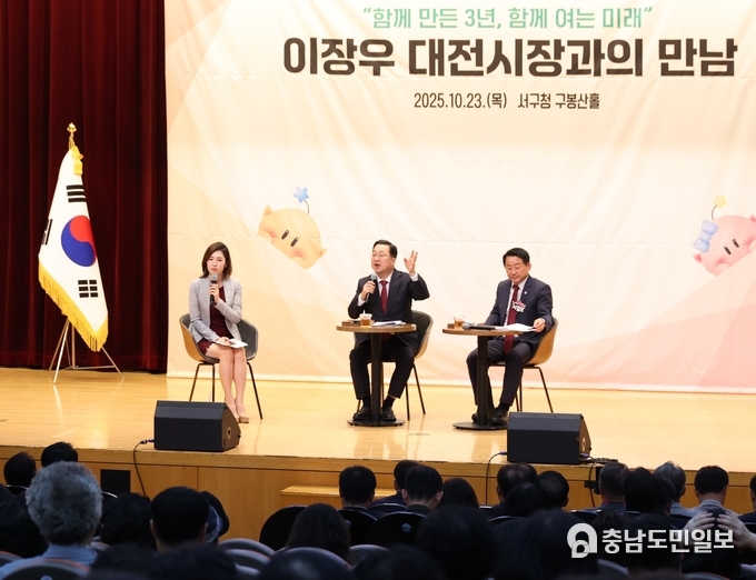 (충남도민일보(도민방송) =대전) 정연호기자/ 이장우 대전시장이 올해 두 번째 자치구 방문 행사로 23일 서구를 찾아 구민 250여 명과 소통의 시간을 가졌다.