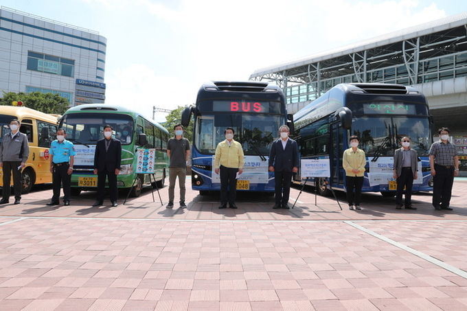 이날 행사에선 오세현 아산시장과 참석자들이 전기버스인 시내버스, 마중버스와 어린이 통학차량 등에 마스크를 직접 씌우고 온양온천역부터 아산시보건소를 거쳐 아산시청까지 3km 가량을 달리며 거리 캠페인을 진행했다. 코로나19 상황을 감안해 최소한의 인원만 참석하고, 사회적 거리두기를 철저히 지키며 진행됐다.