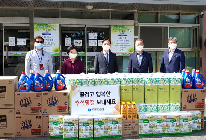 [대전=충남도민일보]정연호기자/ 대전광역시교육청(교육감 설동호)은 추석 명절을 맞아 따뜻한 손길과 관심이 필요한 어려운 이웃들과 훈훈한 정을 나누고자 22일부터 아동, 장애인, 노인 종합 시설 등 9개 사회복지시설을 방문하여 위문품을 전달하고 이웃사랑 나눔을 실천했다.
