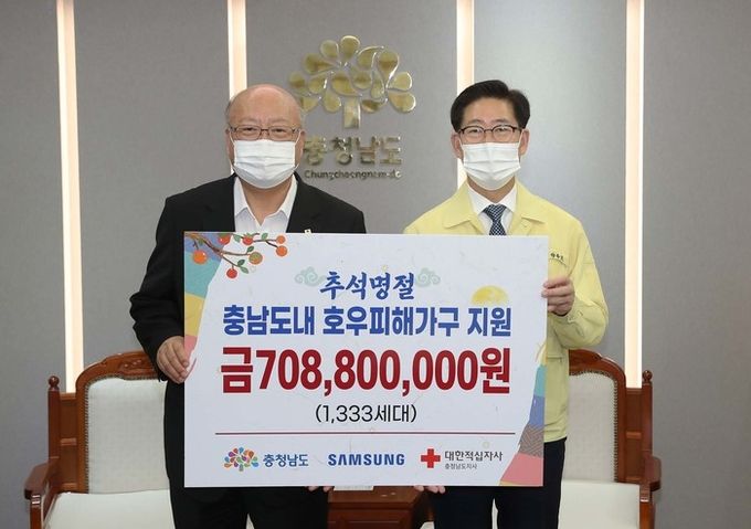도 관계자는 “추석 명절을 앞두고 어려움을 겪고 있는 수해 이재민을 위해 성금을 마련해주신 대한적십자사 충남지사에 감사드린다”고 말했다.