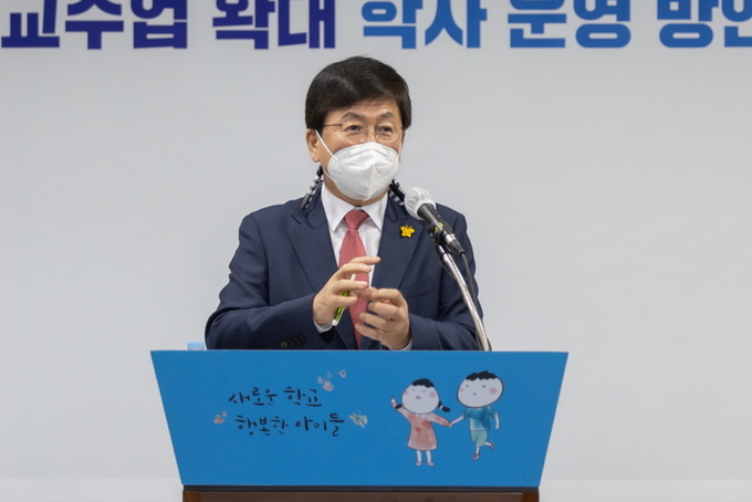 최교육감은 ”거리두기 1단계에서는 전교생 전체 등교가 원칙이며, 관내 750명이하의 학교와 기초학력 지원 및 중도입국 학생 그리고 원격수업 지원 학생은 학교 밀집도에서 제외하며, 관내 대부분의 학교(79%)에서 전체 등교가 가능하고, 나머지 학교에서는 전교생 매일 등교 수준으로 등교가 확대될 것으로 보고 있다“고 했다.