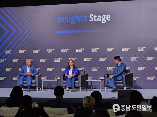 GCash CEO Martha Sazon featured at the Singapore Fintech Festival 2023 stage with Mynt Chairman Ernest Cu
