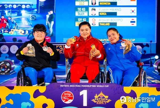 (충남도민일보 / TV / 정호영기자) 음성군장애인체육회는 지난 5. 7.부터 10.(4일간) 태국 파타야에서 개최된 ‘2024 파타야 세계장애인 역도 월드컵대회’에 황유선 선수가 대한민국 국가대표로 참가하여 개인전 -79kg급에서 은메달 1개, 동메달 1개를 획득하는 쾌거를 올렸다.