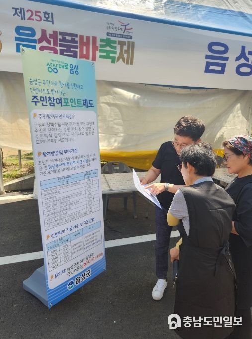 (충남도민일보 / TV / 정호영기자) 음성군은 제25회 품바축제 기간 지역 주민들의 군정 참여 확대를 위해 홍보부스를 마련해 주민참여포인트 제도를 홍보했다.