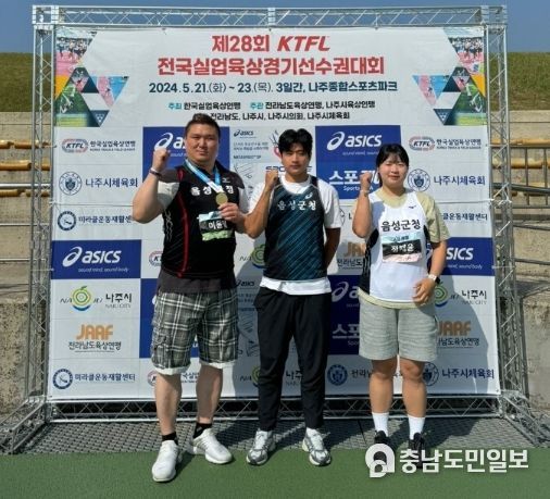 (충남도민일보 / TV / 정호영기자) 음성군청 육상팀이 지난 21일부터 23일까지 전남 나주에서 개최된 ‘제28회 나주 KTFL 전국실업육상경기선수권대회’에 출전해 해머던지기 남자부에서 이윤철 선수가 우승, 원반던지기 여자부에서 정채윤 선수가 3위, 10종경기에서 안충현 선수가 3위를 차지하며 금메달 1개, 동메달 2개를 획득했다.