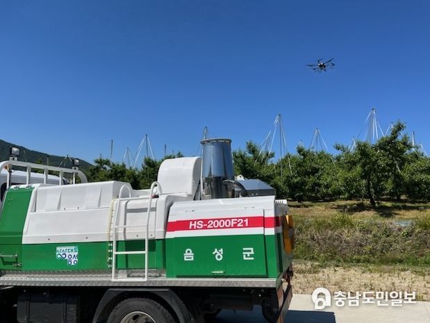 이에 음성군농업기술센터와 산림녹지과의 협업으로 드론과 광역살포기 및 방제 요원 7명을 투입해 농경지와 산림지에 대한 동시 방제를 진행했다.