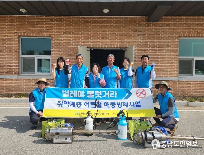 이 사업은 금왕읍 지역사회보장협의체가 추진하며, 본격적인 여름이 시작되는 6월과, 장마가 지나는 8월, 총 2회에 걸쳐 취약계층에 해충방제 서비스를 제공한다.