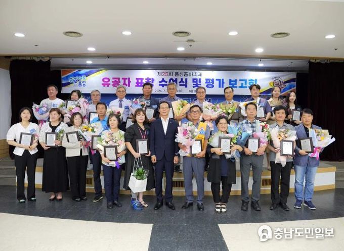 제25회 음성품바축제 적극 참여 지원 유공에 △음성읍 이장협의회 조용관 △금왕읍 주민자치회 이상만 △소이면 라인댄스교실 장현정 △원남면 주민자치회 최혜영 △맹동면 주민자치회 연연흠 △대소면 노인회 정영길 △삼성면 주민자치회 조제동 △생극면 주민자치회 김근수 △감곡면 주민자치회 이필원 씨가 수상했다.