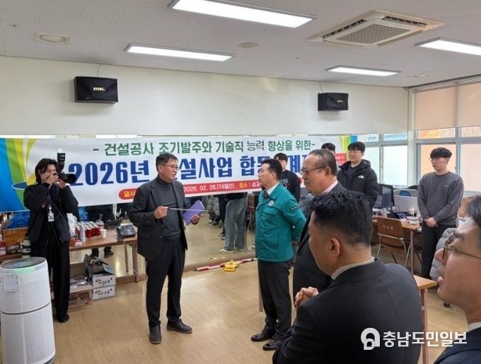 (충남도민일보 =예산) 정연호기자/ 최재구 예산군수는 2026년도 소규모 건설사업의 신속한 집행과 실시설계 용역비 절감을 위해 운영 중인 ‘예산군 합동설계단’ 현장을 방문해 관계자들을 격려했다.