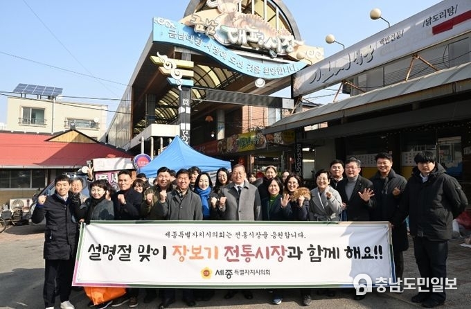 (충남도민일보 =세종) 정연호기자/ 세종특별자치시의회가 2026년 설 명절을 앞두고 지역 상권 활성화를 위해 12일과 13일 양일간 관내 전통시장을 찾아 ‘설맞이 장보기 행사’를 추진했다.
