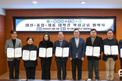 (충남도민일보 = 천안) 정연호기자/ 백석문화대학교(총장 이경직)는 3일 오전 11시, 세종시 한국영상대학교에서 대전·충청·세종지역 전문대학 상호 간 학점교류를 위한 업무협약을 체결했다. 이번 협약은 대전·충청·세종지역 대학들이 공동교육과정을 운영하고 학점교류를 활성화해 지역 산업 수요에 부합하는 실무 중심 인재를 양성하기 위해 마련됐다. 참여 대학들은 교육과정 공동 개발 및 운영과 학점 상호 인정, 우수 교육자원 및 시설 공유, 지역 특화 분야 공동 연구·교육 프로그램 추진에 협력하기로 했다. 협약식에는 백석문화대와 대전과학기술대학교, 대전보건대학교, 신성대학교, 아주자동차대학, 충북보건과학대학교, 충청대학교, 한국영상대학교, 혜전대학교 등 9개 대학 관계자들이 참석해 협약서 서명과 교류·협력 방향 소개, 기념촬영 순으로 진행됐으며, 참여 대학들은 공동교육과정 운영 방안과 학점교류 절차를 단계적으로 마련해 나가기로 했다. 백석문화대 유애현 교무본부장은 “이번 업무협약은 지역 대학의 강점을 공유해 학생들에게 더 폭넓은 배움의 기회를 제공하는 출발점”이라며 “대학 간 연계를 강화해 교육 경쟁력을 높이고 지역 발전에 기여하겠다”고 말했다. 백석문화대는 이번 협약