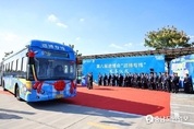 (충남도민일보=정연호기자) '제8회 중국국제수입박람회(CIIE)' 전용 셔틀버스 발차식이 29일 상하이에서 열렸다. 이번에 운행에 투입된 8대의 셔틀버스는 블루를 메인 색상으로 한 세련된 디자인으로 눈길을 끌었다. 버스는 와이탄(外灘)과 상하이 국가컨벤션센터를 오가며 전시 참가자와 관람객의 이동 편의를 높이는 한편, 화이하이루(淮海路), 징안쓰(靜安寺), 쉬자후이(徐家匯), 베이와이탄(北外灘) 등 상하이 도심의 주요 상권을 연결해 운행된다. CIIE 전용 셔틀버스는 11월 1일부터 30일까지 한 달간 상시 운영될 예정이다 [신화통신제공]