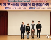 (충남도민일보=대전) 정연호기자/ 대전시교육청은 15일 기초과학연구원 과학문화센터 대강당에서, 초·중등 외국어 동아리 학생, 지도교사, 참관 학생 및 학부모 등 약 200명이 참석한 가운데 ‘2025 제4회 초·중등 외국어 학생동아리 영상 페스티벌’을 개최했다고 밝혔다. 이번 페스티벌에는 초·중등 외국어 학생동아리 12팀이 선정되어‘공유! 가치있는 아이디어 나눔! 신선한 발상!’이라는 주제 아래 창의적인 영상 작품을 선보였다. 참가 동아리는 교육과정과 연계된 학생 주도형 영어·외국어 동아리 체험활동을 통해 영어, 일본어 중국어, 러시아어 등 다양한 외국어를 활용해 청소년의 고민, 환경 문제, 글로벌 문화 소개, 다양성 존중 등 자유로운 주제를 독창적 시각으로 영상에 담아냈다. 행사는 Passport to Global Cultures(글로벌 문화)와 Teens’ Sparks of Insights(10대들의 통찰)의 두 가지 세션으로 나뉘어 진행됐으며 학생들이 직접 제작한 영상 상영, 영상 속 전통 문화 체험, 원어민 교사와 함께하는 토크쇼 및 퀴즈, 시상식 등 다채로운 프로그램으로 참가자들로부터 큰 호응을 얻었다. 또한, 남선초의 국악 병주(가야금‧소금) 축하