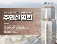 (충남도민일보 =천안) 정연호기자/천안시는 오는 13일 성환읍 행정복지센터에서 ‘천안 성환 혁신지구 도시재생사업 주민설명회’를 개최한다. 이번 설명회는 천안 성환 혁신지구가 지난 9월 5일 국토교통부 도시재생 혁신지구 공모사업에 최종 선정됨에 따라, 사업의 주요 내용과 시의 향후 추진계획을 지역 주민들에게 알리고 의견을 수렴하기 위한 자리이다. 천안 성환 혁신지구 도시재생사업은 기존 이화시장 일원에 산업단지·대학·연구기관을 연계한 혁신거점시설을 조성하고, 주거·상업· 복지시설 등이 결합한 공간을 조성하는 사업이다. 주민설명회에서는 사업 개요와 향후 계획, 주민 참여 방안 등을 안내하고, 질의응답 및 의견수렴도 함께 진행될 예정이다. 이경열 도시주택국장은 “성환 혁신지구 도시재생사업은 성환 지역 활성화를 위해 오랜 기간 준비해 온 사업인 만큼, 주민과 함께 소통해 추진해 나갈 것”이라며 “많은 주민께서 설명회에 참석해주시길 바란다”고 밝혔다.