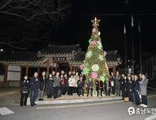 (충남도민일보=홍성) 정연호기자/ 홍성군은 지난 9일 오후 6시 10분 홍성군청기독교신우회 주관으로 홍성군청 홍주아문앞에서 2025년 성탄 트리 점등식을 개최했다. 홍성군청선교회 주관으로 점등식과 함께 진행된 예배는 홍성군기관단체장 10여 명을 비롯해 홍성군기독교연합회와 홍성군기독교직장선교회, 지역주민 등 40여 명이 함께해 성탄의 뜻을 기리는 예배로 진행됐다. 홍성군청선교회 송재철 회장의 사회로 진행된 성탄트리 점등식 예배는 홍성군기독교연합회 이진곡 목사의 기도와 홍성군직장선교회 한규헌 장로의 성경봉독, 오종설 목사의 말씀선포, 홍성군수와 홍성군의회 의장의 축사, 김봉래 홍성군기독교연합회장의 축도로 마무리됐다. 한편, 홍성군은 주민의 안녕과 행복을 기원하고 군청을 오가는 이들이 크리스마스와 새해의 즐거움을 만끽할 수 있도록 대형트리를 설치했다. 이날 점등된 트리 앞에는 포토존도 마련되어 자유롭게 사진도 남길 수 있도록 했다.
