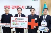 (충남도민일보 =대전) 정연호기자/ 대전시와 꿈돌이라면을 개발해 판매하고 있는 ㈜IC푸드가 라면 판매 수익 전액을 라면 완제품으로 대한적십자사 대전세종지사에 기부한다. ㈜IC푸드는‘꿈돌이 라면’ 출시 이후 매출액의 2%를 기부(유성구행복누리재단 1%, 대전광역시 장애인협회 1%)하는 사회공헌 활동을 꾸준히 해 왔다. 이번 기부는 지역사회 환원 범위를 확대하기 위한 것으로 수익전액을 라면 완제품을 전달하는 현물기부가 특징이다. 대전시 대표 캐릭터를 활용한 판매 수익을 지역사회에 환원함으로써 선순환 지역경제 모델을 구축하고, 소비자의 구매가 자연스럽게 나눔으로 이어지는‘착한 소비’경험을 제공한다는 취지에서 의미가 크다. 특히 현물로 기부된 라면은 지원이 필요한 현장에서 즉시 활용할 수 있어 취약계층 지원과 지역 복지사업 등 다양한 사회공헌 활동에서 보다 실질적인 지원 효과가 기대된다. 박승원 대전시 문화예술관광국장은 “지역을 대표하는 캐릭터 콘텐츠가 시민들의 일상 소비와 결합해, 구매 자체가 지역사회 기여로 이어지는 구조를 만들었다”라며 “이번 기부를 계기로 지역 기업과 함께 보다 체계적이고 실효성 있는 사회공헌이 정착될 수 있도록 지원하겠다”라고 말했다