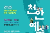 (충남도민일보 =천안) 정연호기자/ 한국예총 천안지회(지회장 현남주, 이하 천안예총)가 주최하고 천안시가 후원하는 제22회 ‘천안예술제’가 10월 17일부터 19일까지 신방공원 야외공연장과 천안문학관 등에서 개최된다. 천안예총 산하단체인 국악‧무용‧문인‧미술‧음악‧연극‧연예‧사진협회 등 8개 단체 순수예술인과 예술동호인 1,000여 명이 시민들과 함께하는 천안 최대 규모의 예술제다. 올해로 22회를 맞은 천안예술제는 18일 오후 2시 개막식을 시작으로 다양한 프로그램이 진행된다. ‘예술문화의 새로운 패러다임, 순수예술의 모든것’을 주제로 한 천안예술제의 주요 프로그램은 18일 △무용협회 ‘2025 청소년 댄스경연대회’ △연극협회 ‘마당극 뮤지컬 사랑뎐’ △예술동호인단체 ‘천차만별 콘서트’ △기획프로그램 ‘퍼포밍아트 페스타’ 를 진행한다. 19일에는 △문인협회 ‘2025 시민애송시 낭송대회’ △국악협회 ‘국악극 잔칫날’ △연예협회 ‘2025 향토가수 콘서트’ △음악협회 ‘독립! 음악으로 말하다’ 가 진행된다. 예술제에 앞서 17일(금) 5시에는 천안문학관에서 ‘천안예술문화 발전을 위한 예술제의 역할’을 주제로 예술 포럼이 열리고 18일부터 19일까지는 △미술협