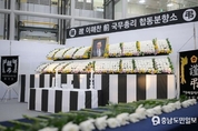(충남도민일보 =세종) 정연호기자/ 세종특별자치시가 고(故) 이해찬 전(前) 국무총리를 추모하기 위해 27일부터 31일까지 세종시청 1층 로비에 합동분향소를 운영한다. 합동분향소는 국가와 지역사회 발전에 헌신한 고인의 넋을 기리고 추모하기 위한 공간으로, 추운 날씨로 인한 조문객의 불편을 최소화하고자 실내에 마련됐다. 시민 조문 가능 시간은 오전 9시부터 오후 9시까지다. 최민호 시장은 “고 이해찬 전 총리께서는 정파를 떠나 국가와 지역발전이라는 대의에 헌신한 인물”이라며 “시민들께서도 합동분향소에서 고인의 숭고한 정신을 추모하는 시간을 가지시길 바란다”고 말했다. 한편, 최민호 시장은 분향소 운영 첫날인 27일 오전 8시 30분 간부 공무원들과 함께 합동분향소를 찾아 조문했다.