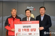 (충남도민일보 =충남) 정연호기자/ 충남도는 대천김으로부터 1억원 상당의 김을 기탁받았다고 27일 밝혔다. 이날 도지사 외부접견실에서 열린 전달식에는 김태흠 지사를 비롯해 최민순 대천김 총괄대표, 성우종 충남사회복지공동모금회장 등이 참석해 나눔의 의미를 함께했다. 이번에 기탁된 김은 충남사회복지공동모금회를 통해 경제적 어려움을 겪고 있는 이웃들에게 전달될 예정이다. 김 지사는 “지역 기업의 따뜻한 나눔이 취약계층에게 큰 위로와 도움이 될 것”이라며 “기탁된 물품을 꼭 필요한 분들께 전달하겠다”고 말했다. 최민순 총괄대표는 “지역사회와 함께 성장해온 기업으로서 어려운 이웃에게 조금이나마 보탬이 되고자 했다”며 “앞으로도 지속적인 나눔을 통해 사회적 책임을 다하겠다”고 답했다.