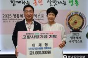 (충남도민일보 / TV / 김천호기자) 경기도 하남시에 위치한 ㈜디자인하는사람들의 이채형 대표가 지난 19일 영동군을 찾아 고향사랑기부금 100만원 전달했다. 이 대표는 영동군 추풍령면 출신으로 평소 고향에 대한 관심과 지원을 아끼지 않았다. 이채형 대표는 “고향의 따뜻한 정과 추억이 나에게 큰 힘이 되어왔다”며 “영동군에 조금이나마 보탬이 되고 싶어 이번 기부를 결정했다”고 말했다. 군 관계자는 이채형 대표의 기부에 감사를 표하며 “기탁된 기부금은 지역 사회 발전을 위해 소중히 사용하겠다”고 전했다.